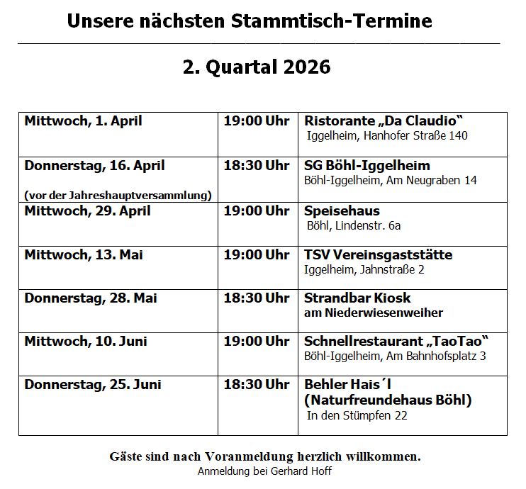 Termine zum Vormerken: